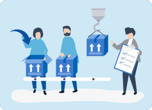 Bagging means grouping multiple parcels together into a “bag” for a specific destination or route.
